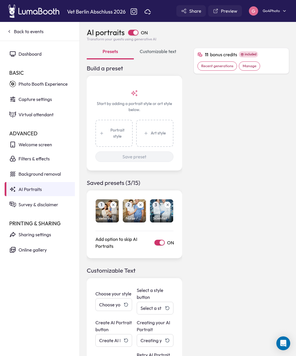 I would like a feature That you can chose only single photo template if you want to use AI portrait but youโre allowed to choose all templates if you skip AI